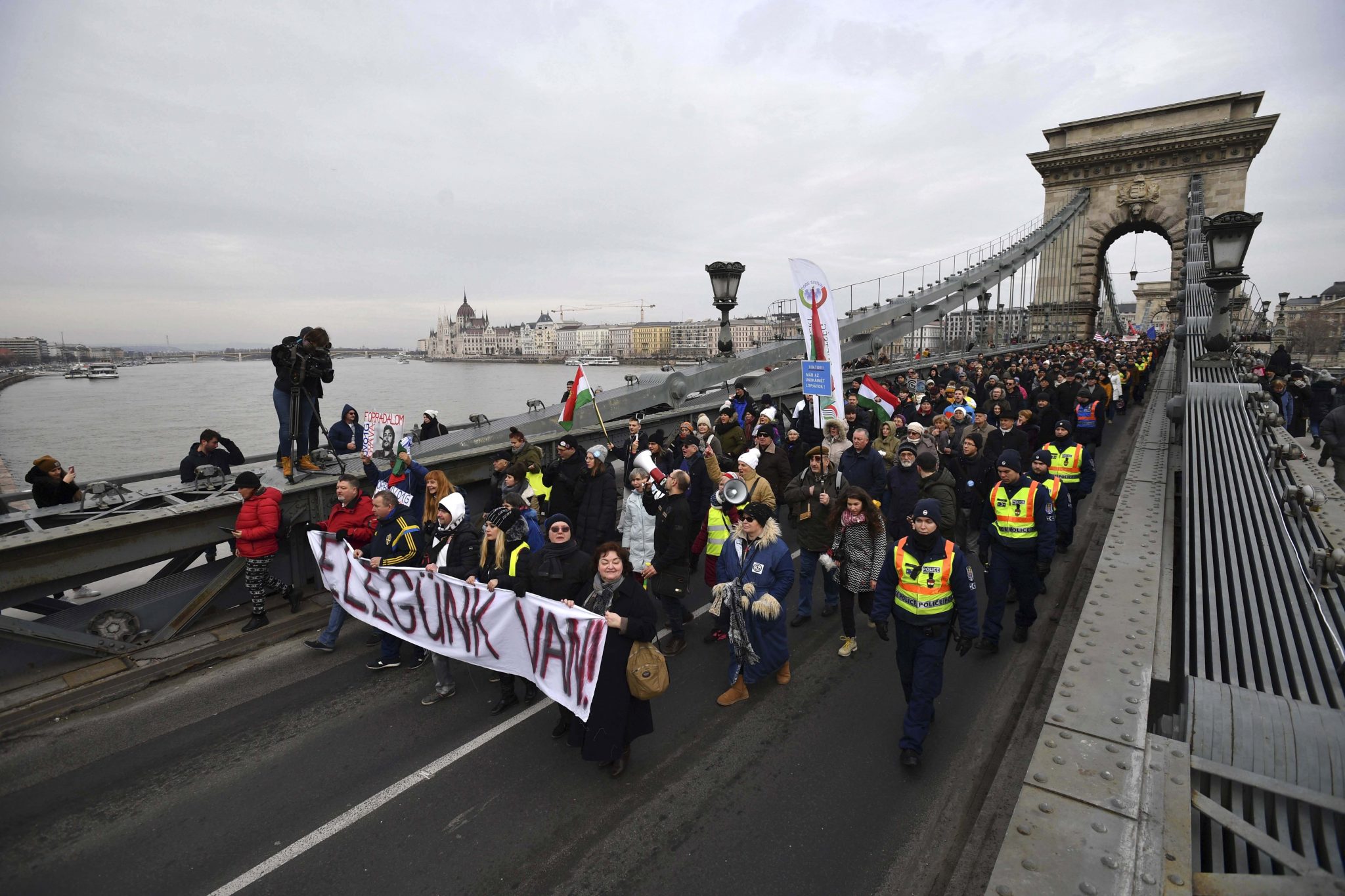 Dopo la manifestazione nella capitale, un gruppo di manifestanti ha marciato verso l’estremità Pest del Ponte delle Catene, bloccando il traffico sul ponte.