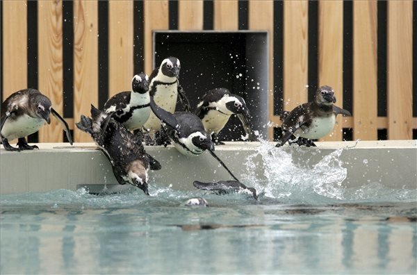 I pinguini africani sono in una piscina di 90 metri cubi e ci sono rifugi e nidi da allevare I 16 pinguini sono arrivati alla proposta del coordinatore della specie dal Regno Unito e dalla Francia a Veszprém.