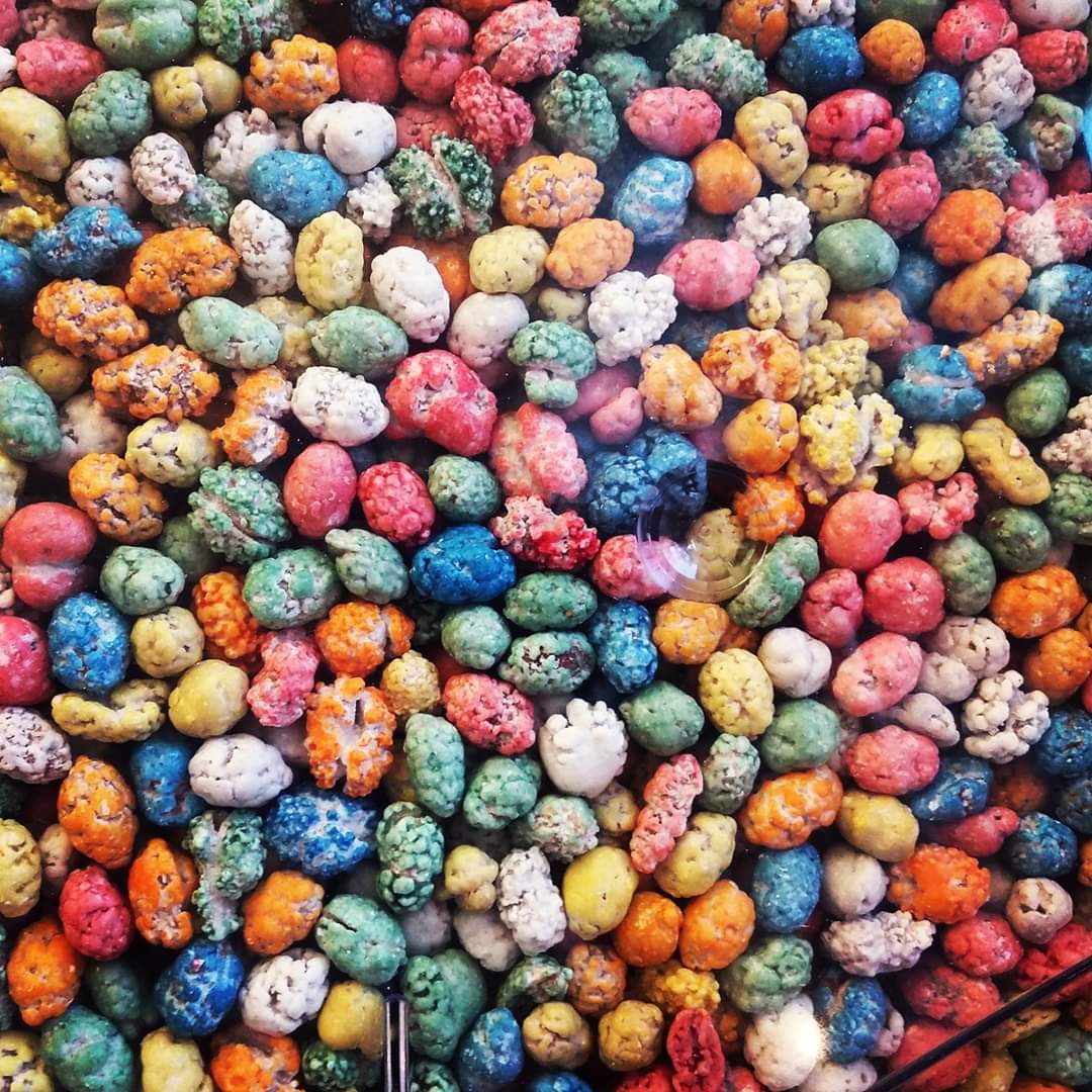 “Dunakavics” (Danubio spacca (Danube rockes) dragé di arachidi arrostite in copertura di zucchero colorato)