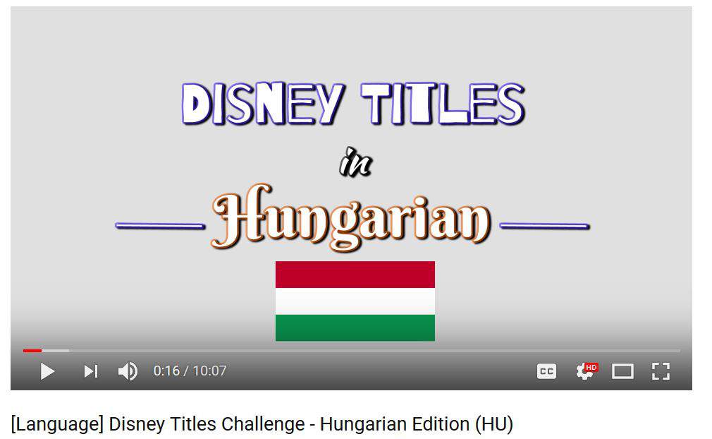 Ora, il canale Youtube di The Forking Tomatoes ha intrapreso una sfida seria: i partecipanti dovevano capire i titoli inglesi dei famosi film Disney basati solo sul titolo ungherese, anche se alcuni crederebbero che questo sia un compito facile, i 3 stranieri hanno dimostrato che se non si conoscono parole ungheresi, è quasi impossibile scoprire la versione inglese.