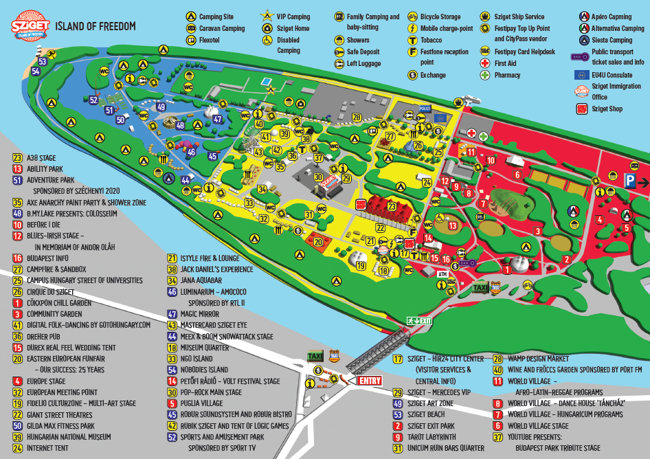 Ora puoi dare un’occhiata alla nuova mappa di Sziget! dai un’occhiata più da vicino, così non ti perderai, troverai i tuoi locali preferiti e scopri quelli nuovi! tutti i locali hanno una descrizione dettagliata e tutti i campeggi, le docce, i depositi sicuri, i bagagli sinistri e i depositi di biciclette sono contrassegnati, quindi tutto ciò che è necessario e vitale per una comoda vacanza del festival.
