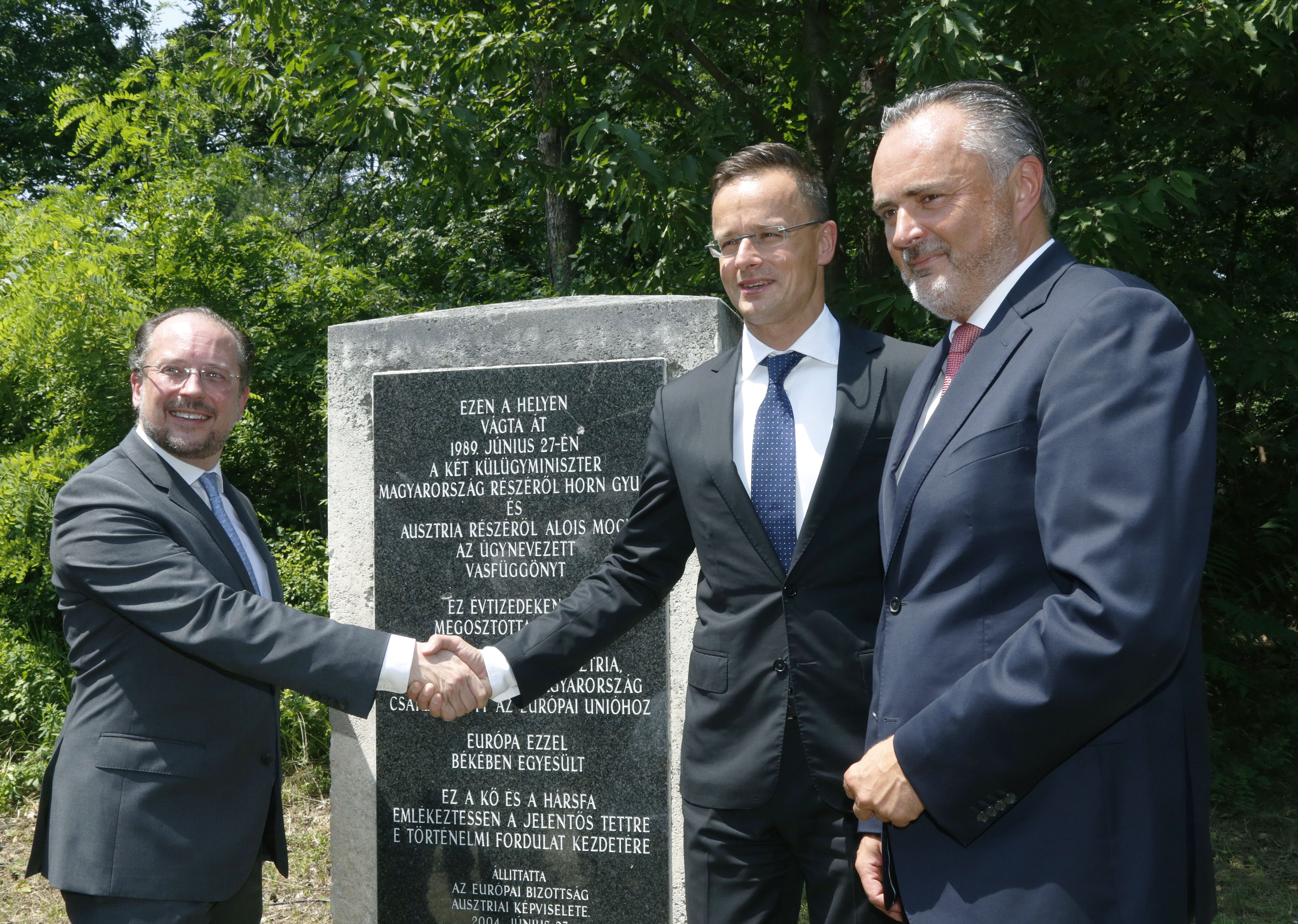 La commemorazione si tenne nel punto esatto in cui l’allora ministro degli Esteri ungherese Gyula Horn e il suo omologo austriaco, Alois Mock, aprirono il confine sigillato tagliando simbolicamente la recinzione di filo spinato il 27 giugno 1989.
