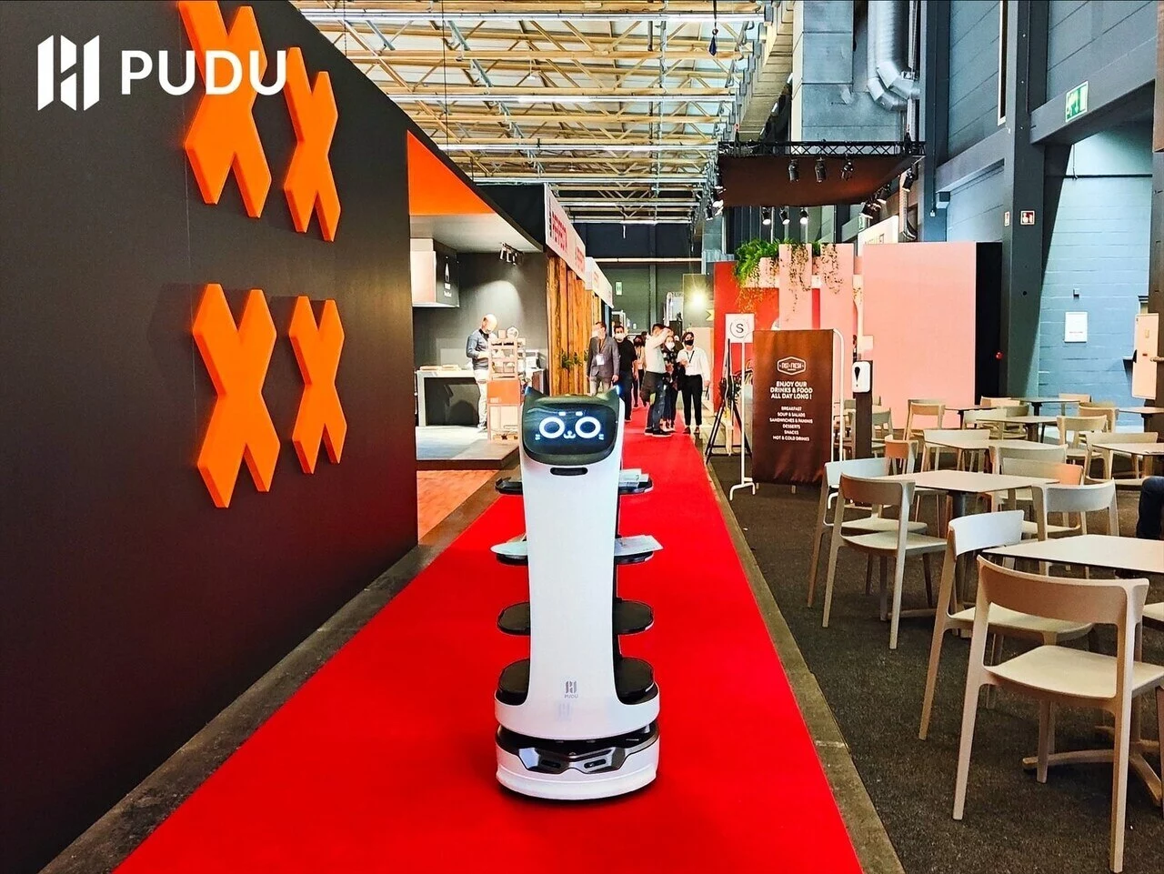 The robots used in the I55 restaurant are the products of Pudu Robotics.
